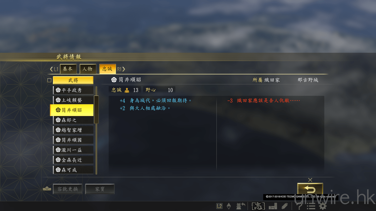 ▲不同的人會有不同的「志」,就算是同陣營,但是兩父子,「志」也會不同,例如:老爹織田信秀的「志」是天下統一,但三仔織田信長的「志」卻是傻瓜的天下,換言之有朝一日信秀死了將大名交給信長打理,織田家的「志」亦會隨之改變。