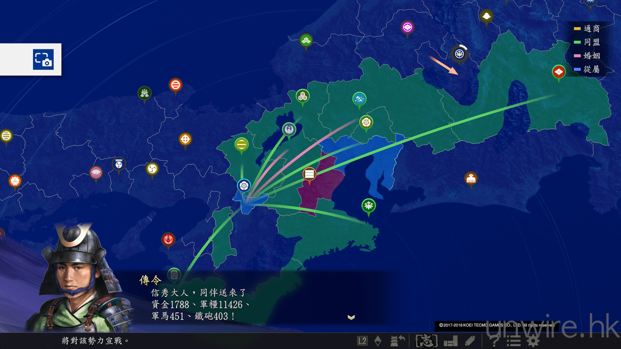 ▲配合戰爭前定下的策略,以及戰爭進行時武將的策略建議,打贏仗的機率可以進一步提升。