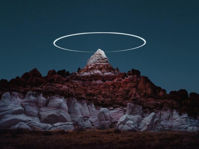 一座大石出現光環的真實大自然照片,它不是由 CG 效果或用 Photoshop 改圖而成,也不是神明降臨。而是有一位專業攝影師 Reuben Wu,利用航拍機安裝了 LED 燈,在大石上繞圈轉,再利用長時間曝光的攝影手法,得到「光環」一樣的效果。除了這張圖片之外,Reuben 亦發表了一系列趣味性作品,值得欣賞。