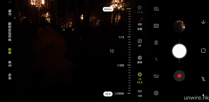 ▲專業模式下,能控制光圈大小,F2.4 光圈下,影像明顯較為暗。
