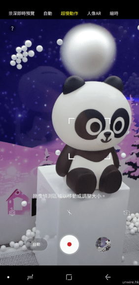 市面上越來越多手機也支援慢動作拍攝,但能達到 960 fps 超慢動作的,就十分之少了。對於 Samsung Galaxy S9 能支援 960 fps 超慢動作拍攝外,當中一個最為特別的功能,就是能夠鎖定某個區域,偵測區域內的動作,自動進行超慢動作拍攝,相當方便實用。另外,超慢動作拍攝也設有手動模式,用家可以親自決定,影片中那一個位置才開始超慢動作拍攝。