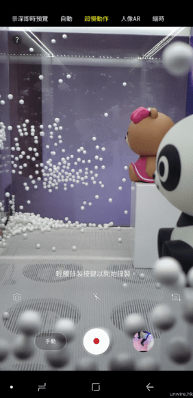 市面上越來越多手機也支援慢動作拍攝,但能達到 960 fps 超慢動作的,就十分之少了。對於 Samsung Galaxy S9 能支援 960 fps 超慢動作拍攝外,當中一個最為特別的功能,就是能夠鎖定某個區域,偵測區域內的動作,自動進行超慢動作拍攝,相當方便實用。另外,超慢動作拍攝也設有手動模式,用家可以親自決定,影片中那一個位置才開始超慢動作拍攝。
