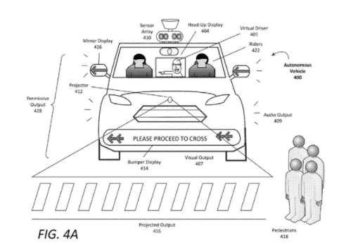 這項專利申請可算是一套解決方案,例如在後視鏡上出現閃鑠的箭嘴,車頭配備投影機,可以顯示一條虛擬的斑馬線,能夠顯示文字的泵把、於擋風玻璃出現虛擬司機,以圖示、文字、影像等指導行人在 Uber 自動駕駛汽車前安全局馬路。Uber 的產品設計師 Sean Chin 表示,專利還在申請階段,尚未得到美國專利當局的批准。