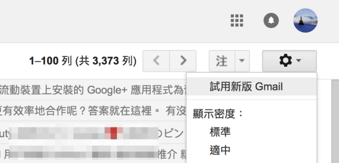 一般用戶可在電腦版網頁右上角,點擊設定按鈕,再選擇「試用新版Gmail」便可。