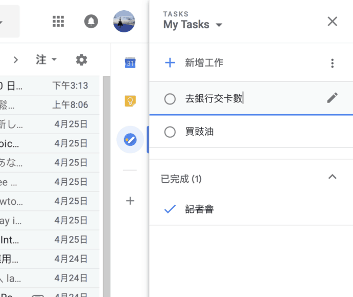 ▲Google Tasks 側邊欄