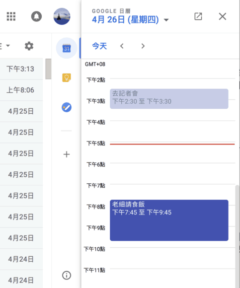 ▲Google 行事曆側邊欄