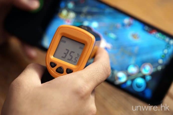 之前都提及過黑鯊手機機身採用金屬物料製造,加上上文提及的液冷系統,散熱固然有效,但就會在玩遊戲時令機身出現微熱情況。筆者就試過玩了半小時《PUBG Mobile》,機身也只是出現暖手情況,溫度大約是 31 度(冷氣房)至 37 度(一般室溫)左右,未至於去到辣手地步,所以大家就不用擔心了。
