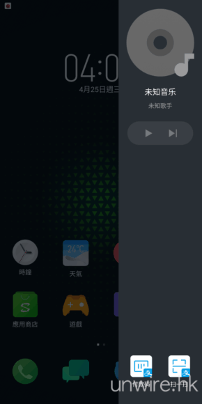 ▲至於在一般介面進行相同動作,就可以開啟副目錄,可以操控音樂播放功能,亦可以用支付寶付款或掃一掃,但後者應該只支援在中國使用。