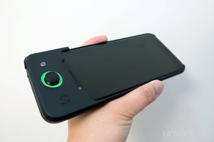 ▲要將手制套上黑鯊手機上,首先要套上跟機附送的保護框。