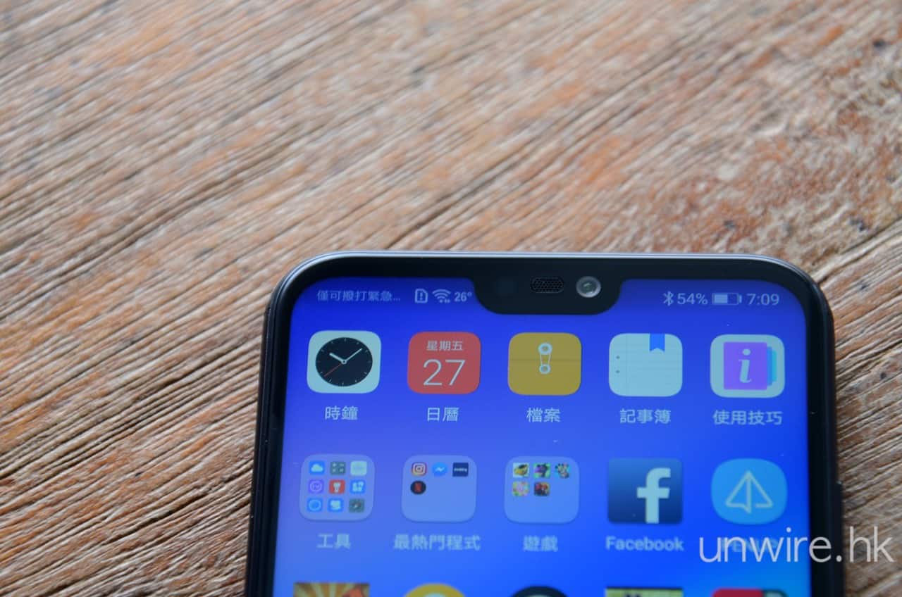▲雖然配備 5.84 吋大熒幕,但由於採用高熒佔比設計,加上採用 19:9 長寬比熒幕以及「M 字額」機頂設計,令機身看起來不會太大。