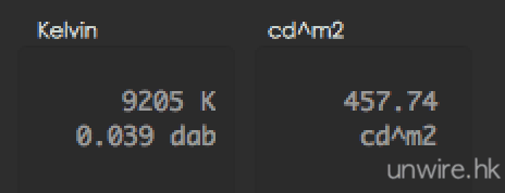 Huawei P20 lite 的白平衡數值為 7464K,同樣是偏藍但仍屬可接受範圍。亮度亦有 449.68cd/m2,表現不錯。