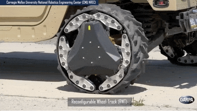 戰場地型變化多端,使用日常的圓形車輪雖然夠在路面高速行駛,但在沙地或泥濘等惡劣地型時,履帶才能夠保障車輛不會卡住。為了讓軍車取得兩款車輪的優勢,美國國防高等研究計劃署(DARPA)設計了一款全新車輪,讓車輛可在行駛其間隨時轉用車輪或履帶。