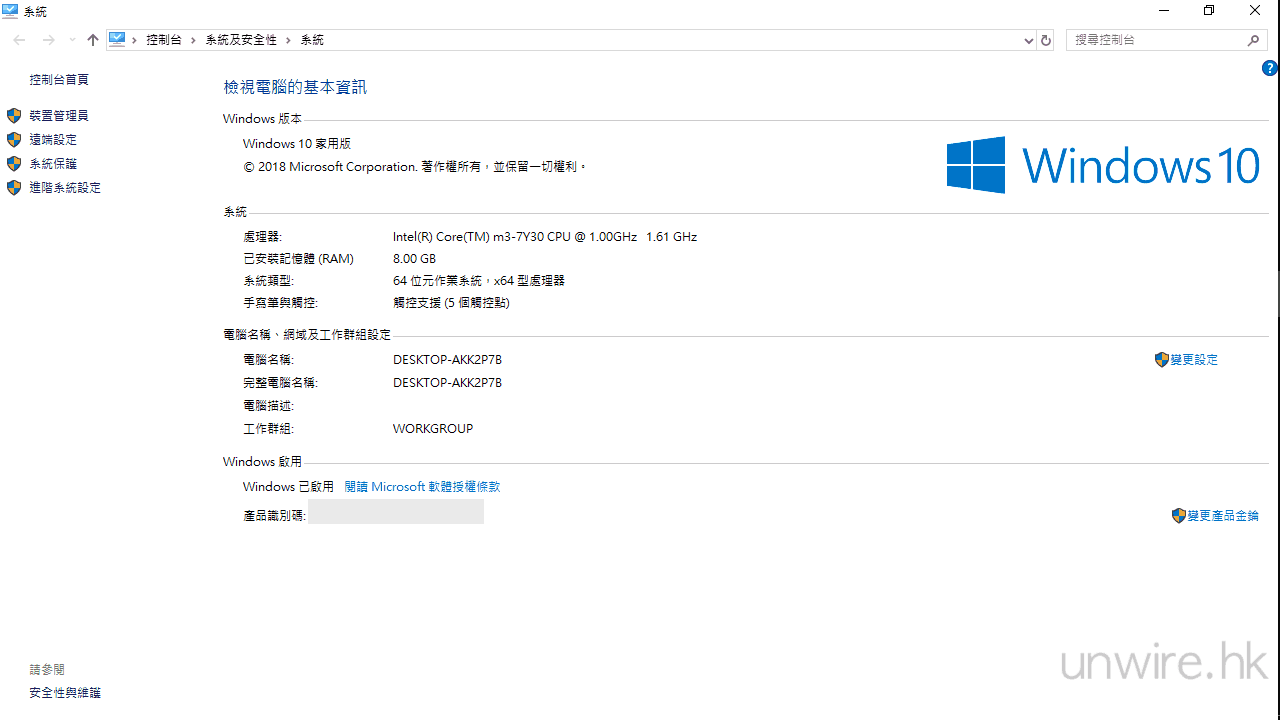 ▲筆者測試的 GPD Win2,採用了 Intel Core m3-7Y30 處理器、8GB RAM 及 Intel HD Graphics 615 內置圖像處理晶片。