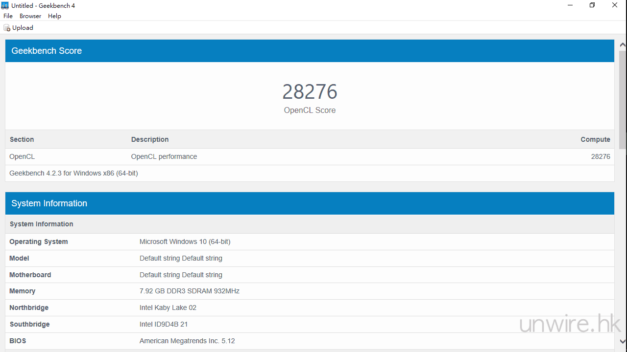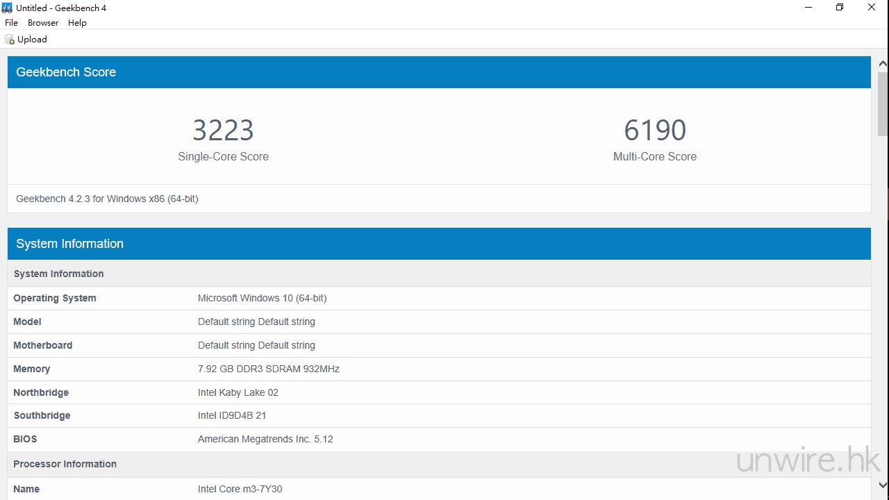 ▲筆者以 Geekbench 4 測試 GPD Win2 的效能,處理器在單核及多核處理上,分別獲得 3,223 分及 6,190 分,而整體效能就獲得 28,276 分,算是中規中矩。