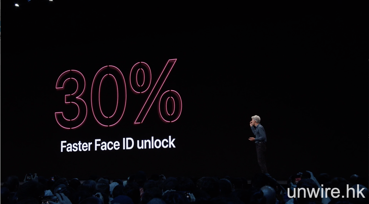 除了 Dark Mode 外,iOS 13 亦提升了 iOS 裝置的整體效能,據官方表示,安裝了 iOS 13 後,Face ID 解鎖速度相比 iOS 12 有 30% 的速度提升,另外開啟軟件速度亦快了 1 倍。此外,APPS 大細亦比以往細了 50%,APPS 更新檔更比過往細了 60%,所以預算相同網速下,下載速度會比以往有進一步提升。