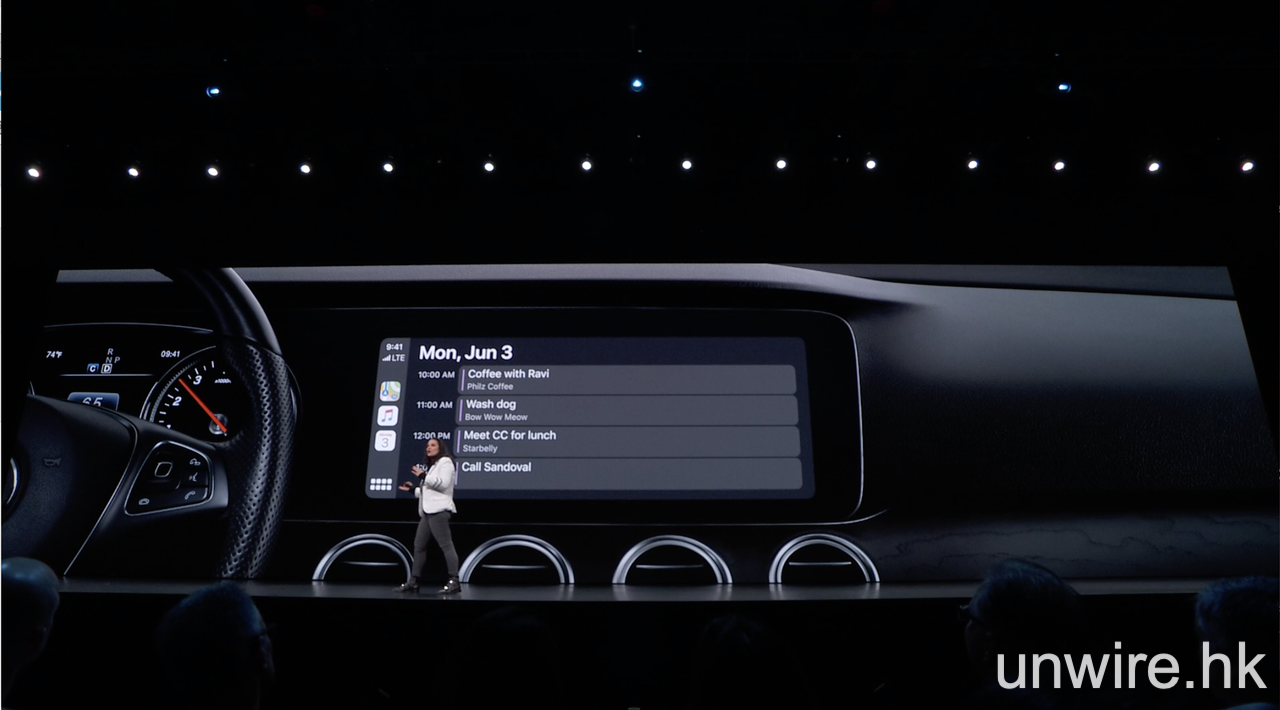 至於車用介面 CarPlay 方面,在 iOS 13 上亦有所改進,在發佈會中可見整個 CarPlay 介面作出了頗大改動,可讓用家在同一個介面顯示多項資訊,例如:在導航時同時顯示音樂播放資訊或未來最接近的行程,當然在導航時亦可以透過 Siri 操控 CarPlay 系統,簡單而言全新 CarPlay 沒有明顯新功能,但就提供更 user-friendly 及更多資訊的介面,可說是為駕駛者度身訂造的介面。