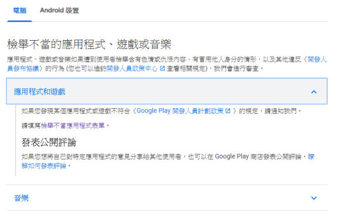 如果向玩用家以後發現有類似情況的出現,可以經透過以下途徑向 Google Play 進行檢舉。