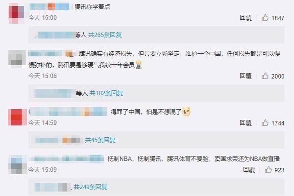 至於同樣為 NBA 轉播平台的騰訊體育至今仍未發表聲明與 NBA 暫停合作,故引起部分網民不滿,要求他們向央視體育「學著點」,更指他們「賣國求榮」,揚言要抵制騰訊。
