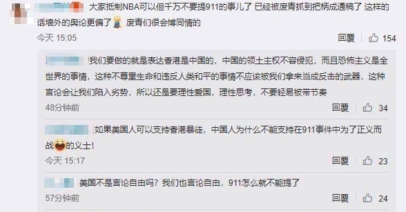 亦有人提醒中國網民不要再提 911 的事,但似乎不獲認同,指「美國都有言論自由 911 為甚麼不能提」。