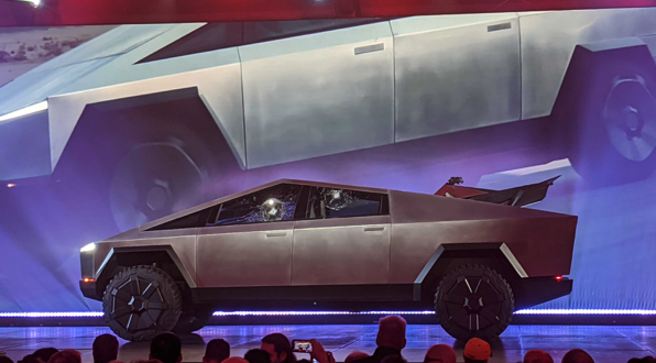 Tesla CEO, 馬斯克 Elon Musk 說卡車在過在幾十年都差不多樣貌,是時候要製造一部與別不同的卡車。Tesla Cybertruck 外型令人聯想起蝙蝠俠裡面的蝙蝠車,但除了外型,它的車身使用了超硬 30 倍冷鑄鋼板製造,在今日的發表會中,馬斯克就曾經用鎚仔敲打車身,完全不留痕跡。發表會上馬斯克更聲稱它可抵擋 9mm 口徑子彈的射擊,而車窗也使用防彈玻璃設計。