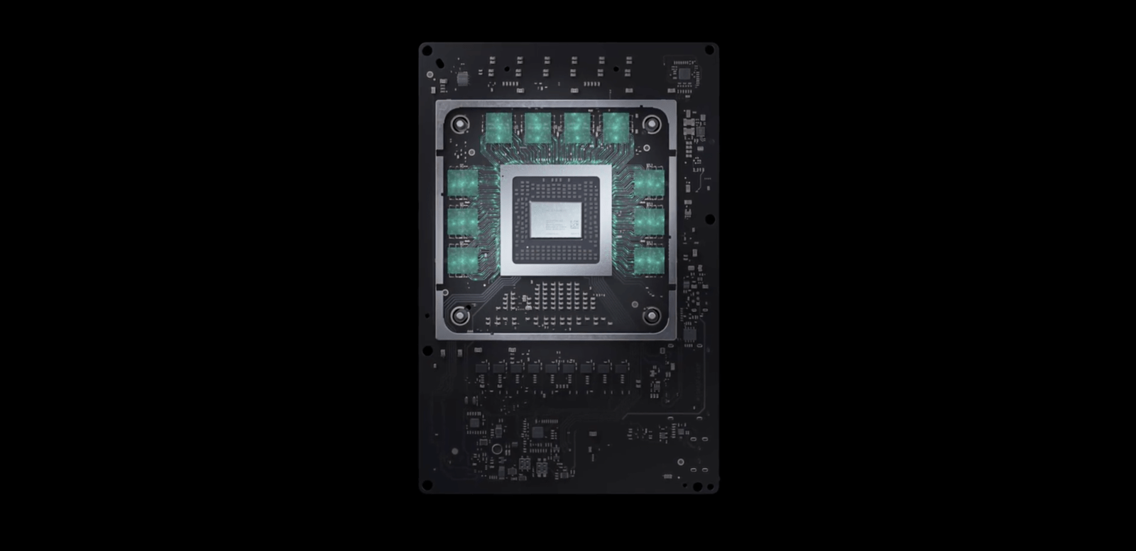 至於 SoC 處理晶片組方面含有 8 核心 AMD Zen 2 CPU,每個時脈為 3.8GHz,另一方面搭載 AMD RDNA 2 GPU,內含 52 個 1.825GHz 運算組,可獲得 12 teraflops 的圖形運算能力,支援 Ray Tracing 光影追跡效果。實際運算能力可達 Radeon RX5700 XT 甚至更好。微軟指目標把整體效能提升至 4K60fps,以及提供 120fps 更新率的遊戲體驗。所有處理器皆以 7nm 製程所製造。