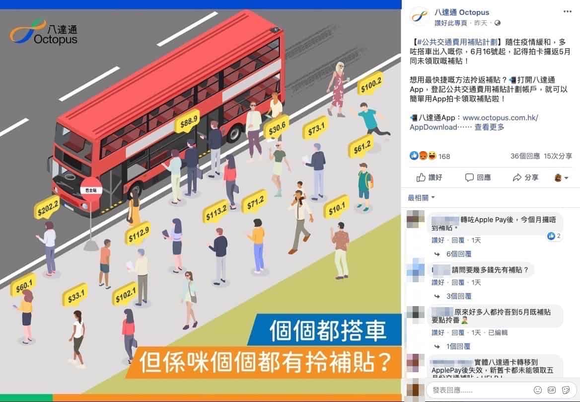 八達通昨日(16 日)在其 Facebook 發文,提醒大家記得取回 5 月未取的交通津貼,但就惹來不少網民留言回應,指自己轉用 Apple Pay 八達通後,就無法領取津貼,更有網民指,整個 5 月的八達通消費和交通記錄都消失不見。