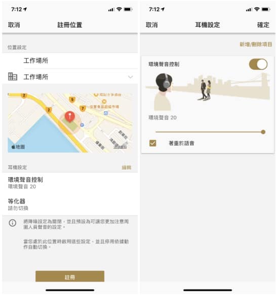 由於最近 4 款 Sony 耳機(包括本機)都用上相同的無線晶片,既有的特點同樣在 WF-SP800N 找到,包括內置佩戴感應器、左/右耳獨立使用、360 RealityAudio、Adaptive Sound Control 場景配置、Quick Attention 快速注意模式、環境音模式等等。而最新軟件更加入了 Location Recognize 位置識別功能,在手機偵測到你身處某個地點時,自動套用個別的音色、降噪設定。AI 人工智能會記下你幾個常到地點,然後你可根據喜好,調校適合的設定。Sony 同 unwire 小編解釋這個功能記錄的地點只會儲存於用戶的手機中,不會上傳至 Sony 或其他第三方機構。