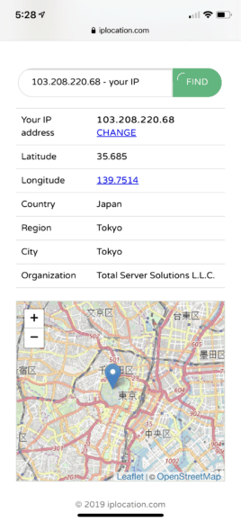 如連接成功,你會看到連接的目項上出現綠色一點。其後小編再用 IP 位置定位工具,看到上網位置已變成日本。