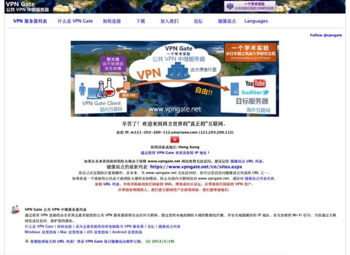 以「公共 VPN 中繼服務器」Vpngate.net 為例,在這裡可找到好多免費的 OpenVPN 兼容伺服器。小編就任意選擇了一個日本伺服器,下載了 OpenVPN 配置文件。