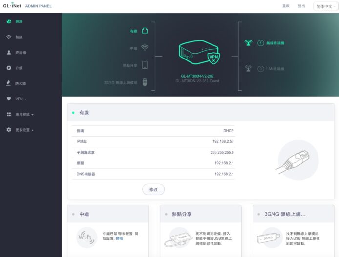 ▲多種連接上網方式:插 LAN 線、中繼 Wi-Fi、通過 USB 連接智能手機/3G/4G上網手指,而 GL.iNet Spitz(GL-X750)4G LTE 智能路由器更可插上 3G/4G SIM 卡