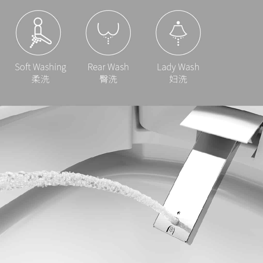 除了能夠上下和前後移動座廁,Jenner 亦為智能馬桶加入噴水清潔功能,官方聲稱以起泡式出水,混有氣泡的水流會細膩溫和、柔和地沖洗,然後還提供即開即熱的恆溫暖水和暖風烘乾,而噴頭會在使用前後自動清洗,減少交叉感染的機會。智能馬桶還懂得自動翻蓋和用後關上,亦配備活性炭除臭功能。
