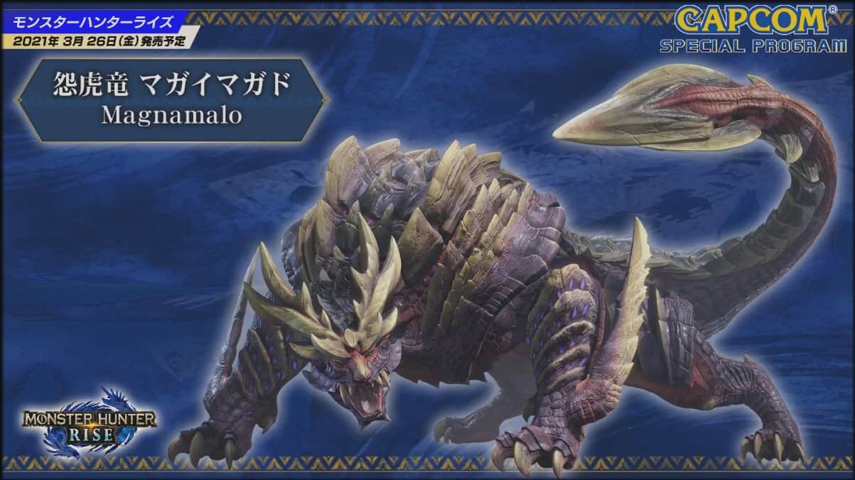 在昨晚播放的東京遊戲展 2020 Capcom 特別節目中,Capcom 首度公開遊戲《Monster Hunter Rise》和《Monster Hunter Stories 2: Wings of Ruin》的一些魔物的畫面截圖,但就未有透露遊戲中最主要魔物 Magnamalo 的細節。