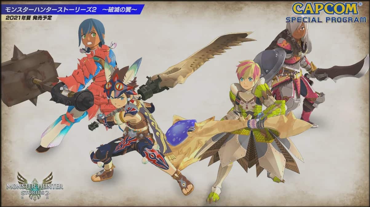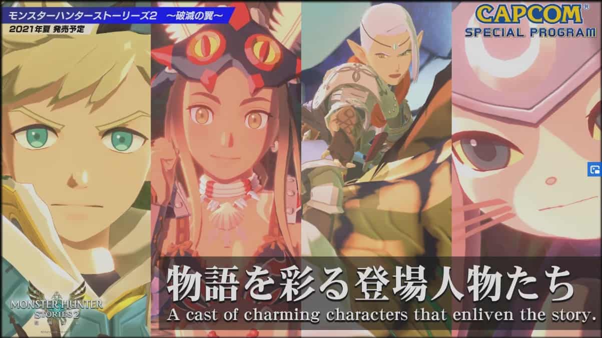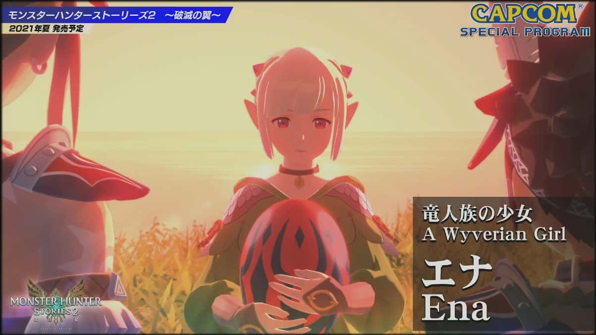 Capcom 希望無論是「芒亨」的捧場客,還是日系 RPG 的玩家,都能夠享受《Monster Hunter Stories 2: Wings of Ruin》,又表示過往幾代的魔物都會在遊戲內現身。今次遊戲並非如傳聞般以 Red 作為主角,而是以 Red 的後裔作為主軸;另一主角是龍人族少女 Ena,玩家更可以自訂角色。Capcom 為玩家準備了 4 款「芒亨」經典武器,另外兩款全新武器,會和其他角色一同在稍後公開。