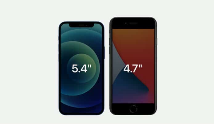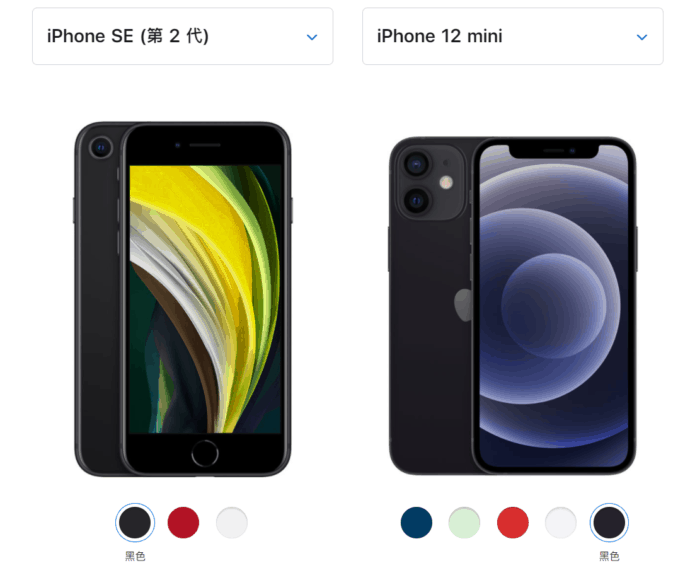 而 iPhone SE 2020 的大小是 138.4 毫米 x 67.3 毫米x 7.3 毫米,並重 148 克。新推出的 iPhone 12 mini 則重 133 克,尺寸亦比 iPhone SE 2020 更小,為 131.5 毫米x 64.2 毫米x 7.4 毫米。兩者的同樣設有 64GB、128GB 以及 256GB 容量的版本供用戶選擇。