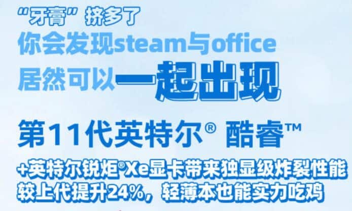 在宣傳網頁的用語中,暗喻眾多用戶說他們「擠牙膏」,其實 Intel 卻有眾多「猛料」,包括對 Wi-Fi 6、Thunderbolt 4 作出支援,也令到「軟件流暢到飛起」,「steam同office竟可一同出現」、「輕薄本也能實力吃雞」,以圖擺脫目前較多用戶心目中新一代處理器效能提升不大的印象。
