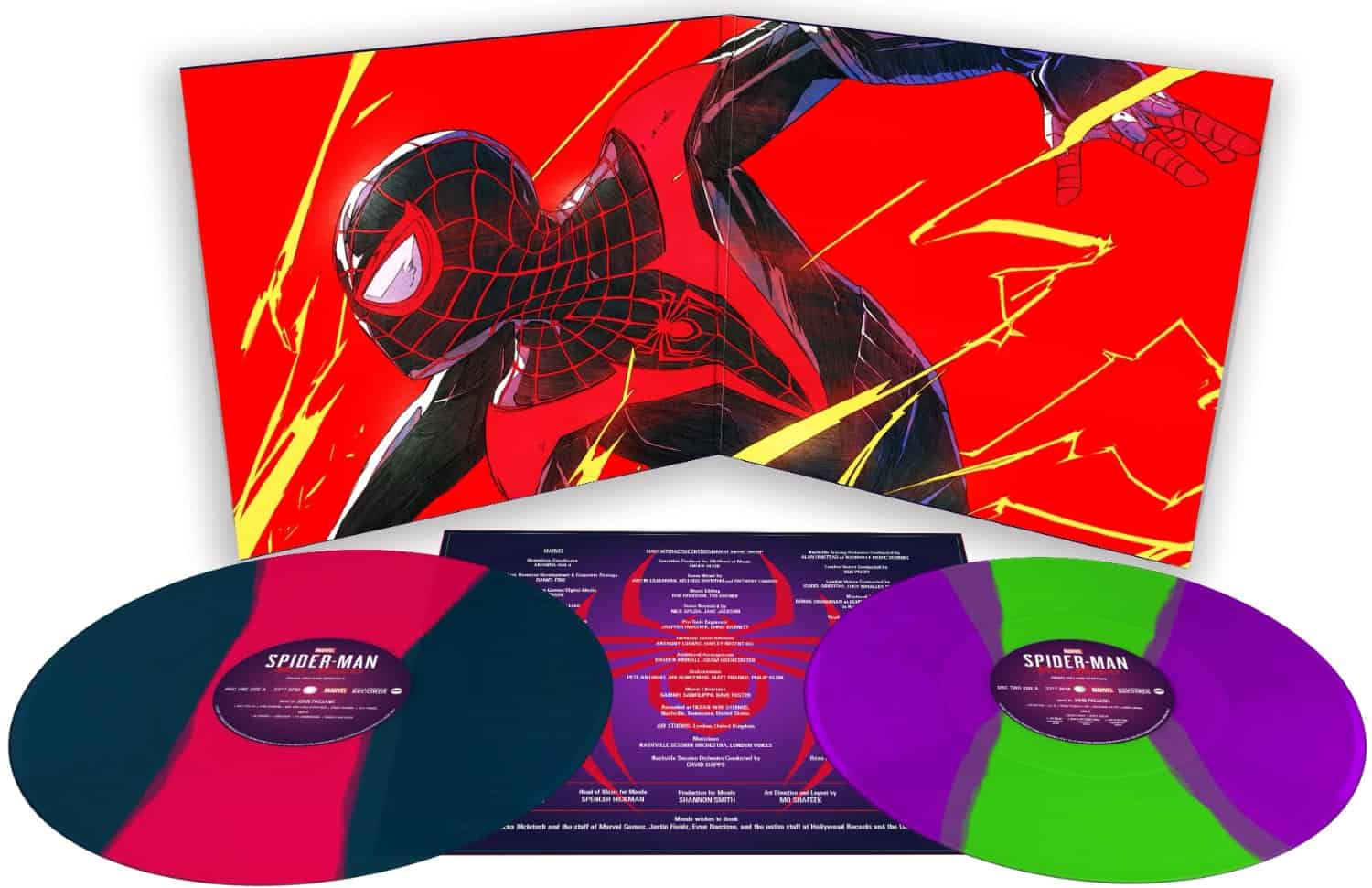 《Marvel’s Spider-Man: Miles Morales》的原聲大碟由兩隻 180g 彩色,或兩隻 180g 純黑色黑膠唱片組成,伴以由藝術家 Chun Lo 繪畫的唱片封套和插畫。兩隻大碟共收錄了 19 首在遊戲中的配樂和歌曲,包括 Jaden 的「I’m Ready」、Lecrae 的「Where We Come From」和「This Is My Time」等。