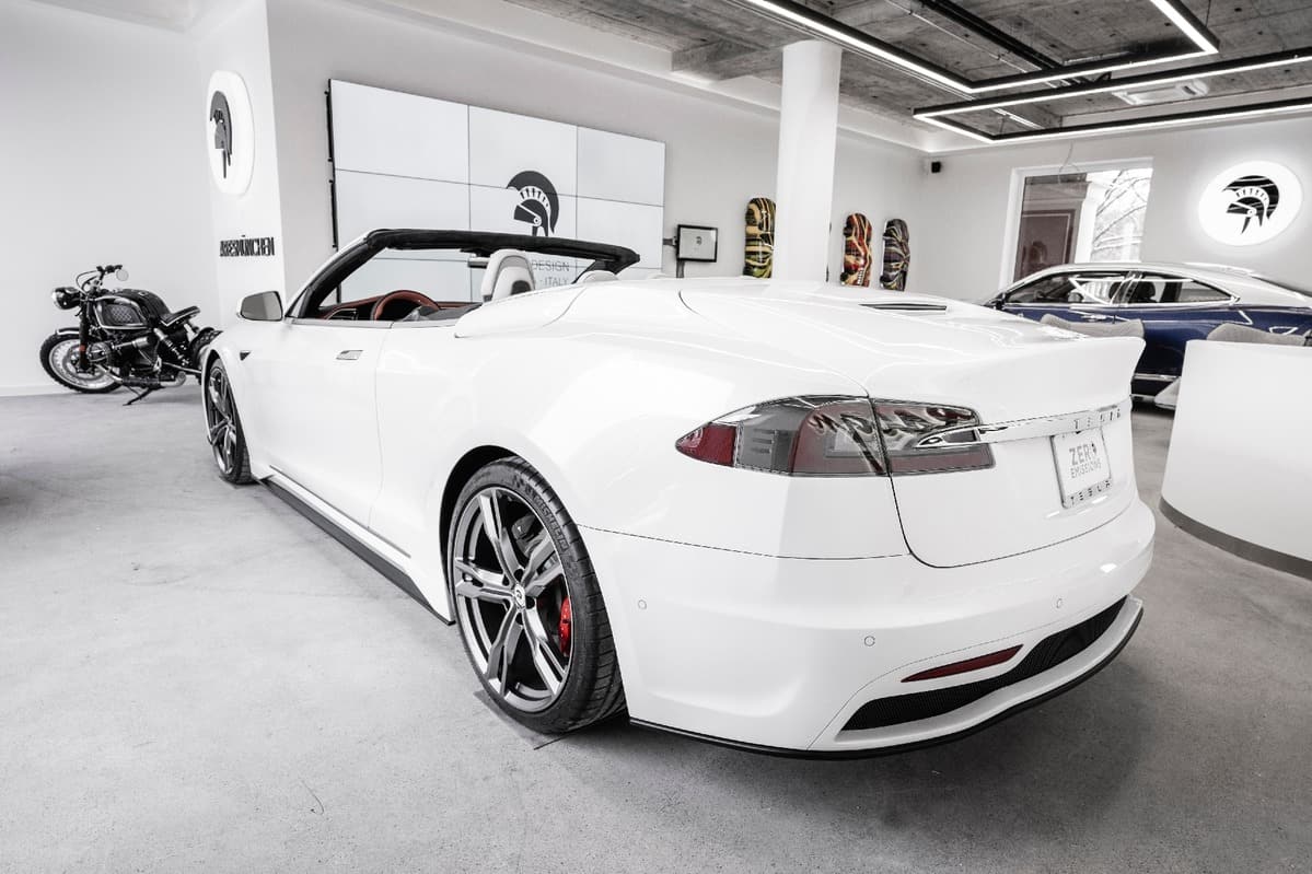 Ares Design 的一貫宗旨是由設計師與工程師合作,共同設計和製造獨一無二的定制車款,而今次 Tesla Model S 項目就是一個例子。Ares 並非單純將車頂、B 柱和後排車門移除,將之變成軟布頂開蓬車,他們徹底改造 Model S,包括修改車架、車身、空氣力學等。就連車廂亦大幅修改,換上了純白真皮內籠,配以橙色點綴,後排座椅更經過重新設計。