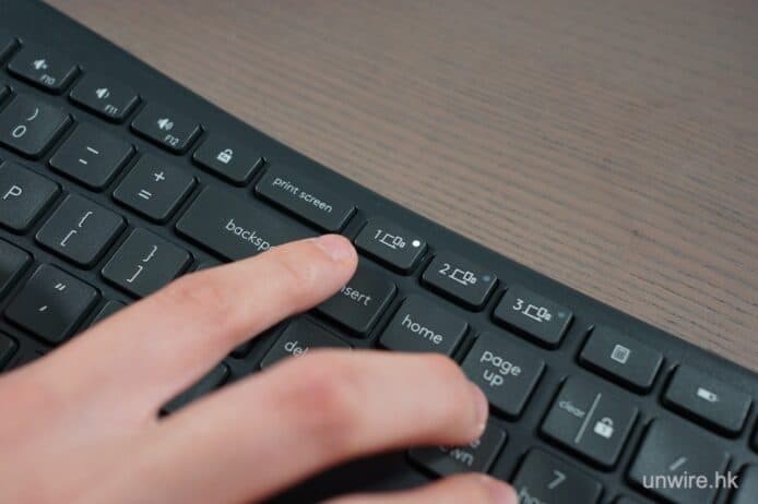 另外更備有 Easy-Switch 功能,於鍵盤上設置了按鍵讓用家可以在三台裝置之間輕鬆切換。使用 Easy-Switch 按鍵在三款裝置之間切換相當方便,只需輕輕一按便能輕鬆切換到另一已連接的設備,等待時間亦不長,對於有需要同時使用多部設備的使用者來說相當實用。