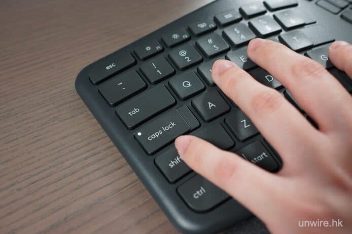 而鍵盤採用薄膜式按鍵,雖然失去了機械式鍵盤所帶來的充實感與快感,但換來更輕薄的感覺,只需輕輕一按便已經可以輸入文字。而按鍵亦使用了凹陷設計,可以輕易貼合手指頭,按下去感覺舒適。但遺憾 ERGO K860 並沒有配備背光功能,因此在黑暗環境下較難使用。不過 Caps Lock 及 Easy-Switch 功能鍵設有指示燈,讓用家可以更清晰地了解電腦情況。