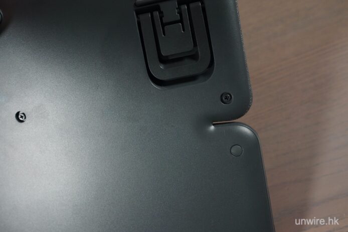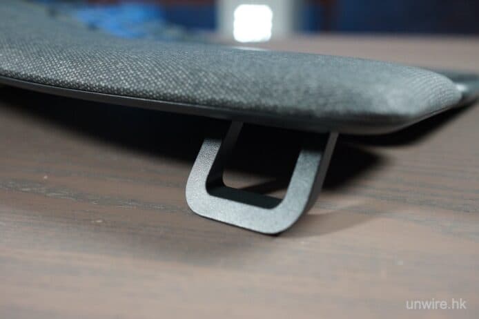 而鍵盤手托下設有支架,分別有 4 及 7 度兩種可供用家調整手部擺放角度,為使用者提供更舒適的體驗。用家可根據個人感覺以及舒適度,調整兩種不同的高度以配合自己。不過根據小編實測,不使用支架的模式似乎最適合放在桌上的用家,否則感覺便有些過高,難以使用。
