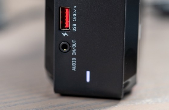 ▲WD_BLACK D50 機面有 1 個可為智能手機/平板電腦充電的 USB Type-A 插口、1 個 USB Type-C 插口,兩者速度皆可達 10Gb/s,另有 3.5mm 耳機輸出/咪高風輸入插口