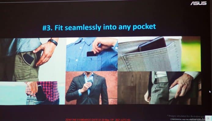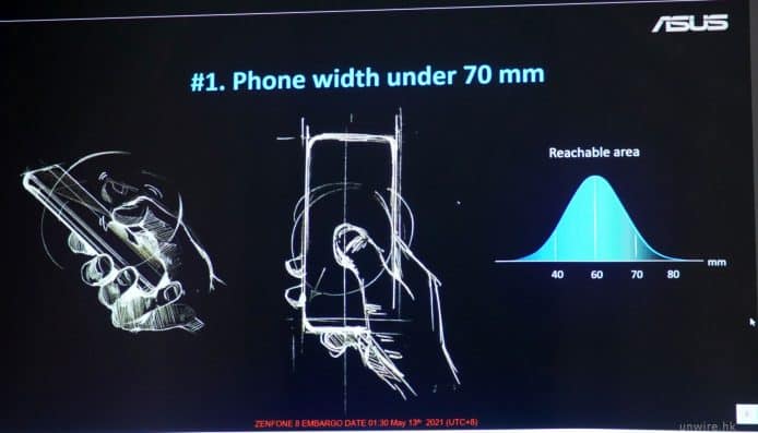 ▲ZenFone 8 據官方表示,設計目標是希望將闊度減至少於 70mm,令大家可以更舒服進行單手操控,大細亦方便放入任何衫袋褲袋。