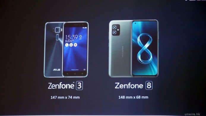 ▲官方更表示,ZenFone 8 的機身面積,與接近 5 年前推出的 ZenFone 3 其實差不多,可見機身在現時旗艦手機中,確實很細。