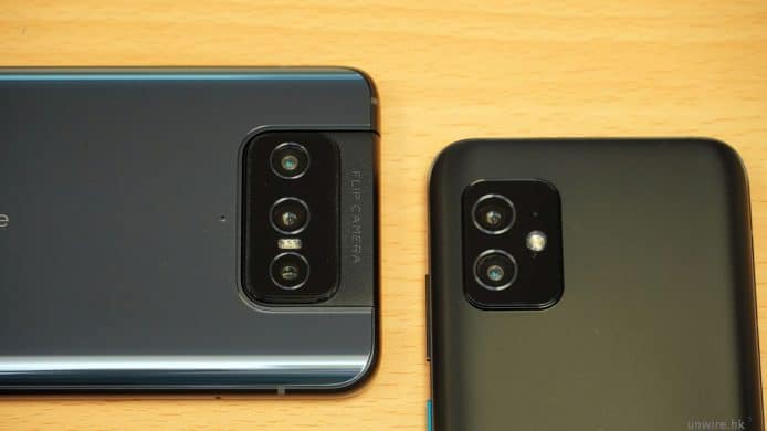 ▲ZenFone 8 Flip 內建了與上代相同的翻轉鏡頭設計,亦同樣配置了 3 鏡頭;而 ZenFone 8 就採用傳統直板機的機背鏡頭,採用雙鏡頭設計。