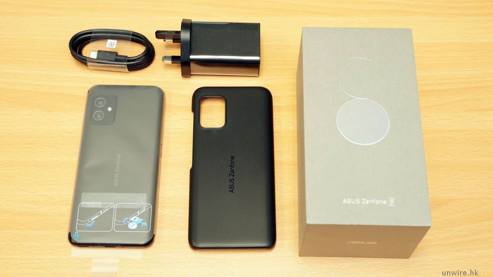 ▲這就是 ZenFone 8 的開箱,大家可以見到包裝十分簡潔,基本上除了手機本身,就只有塑膠保護殼、充電火牛及 USB-C 充電 / 資料傳輸線。