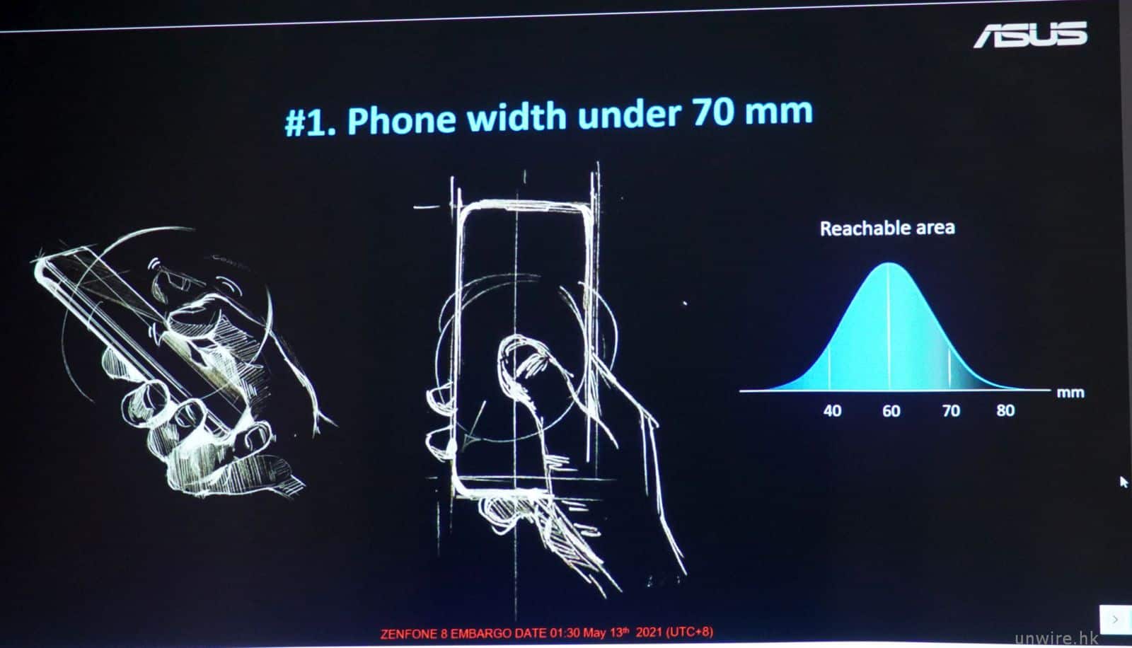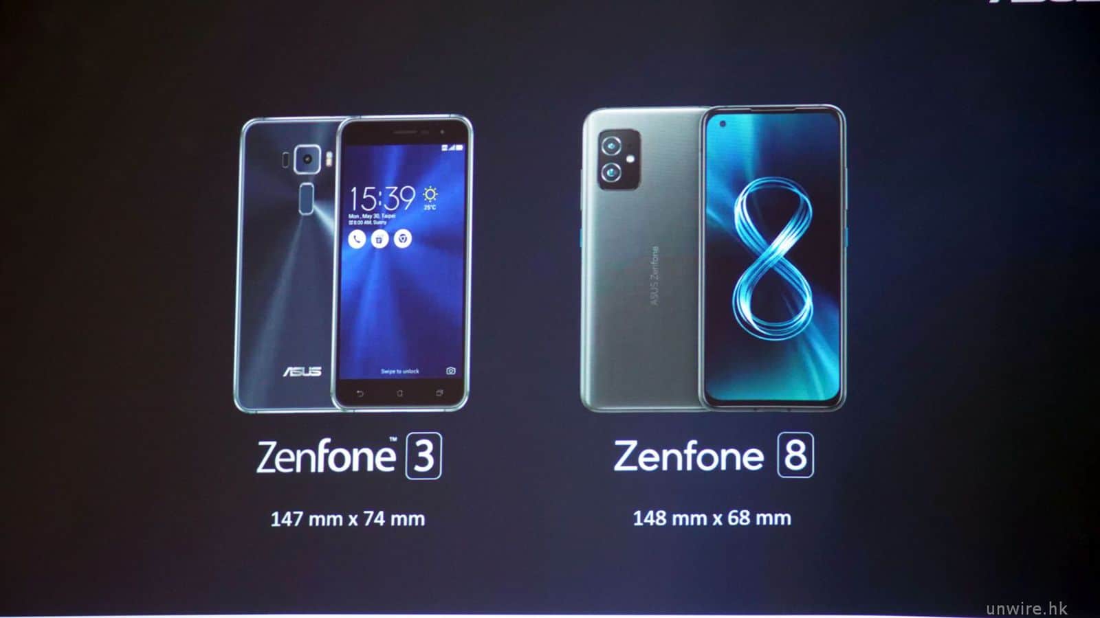 ▲官方更表示,ZenFone 8 的機身面積,與接近 5 年前推出的 ZenFone 3 其實差不多,可見機身在現時旗艦手機中,確實很細。