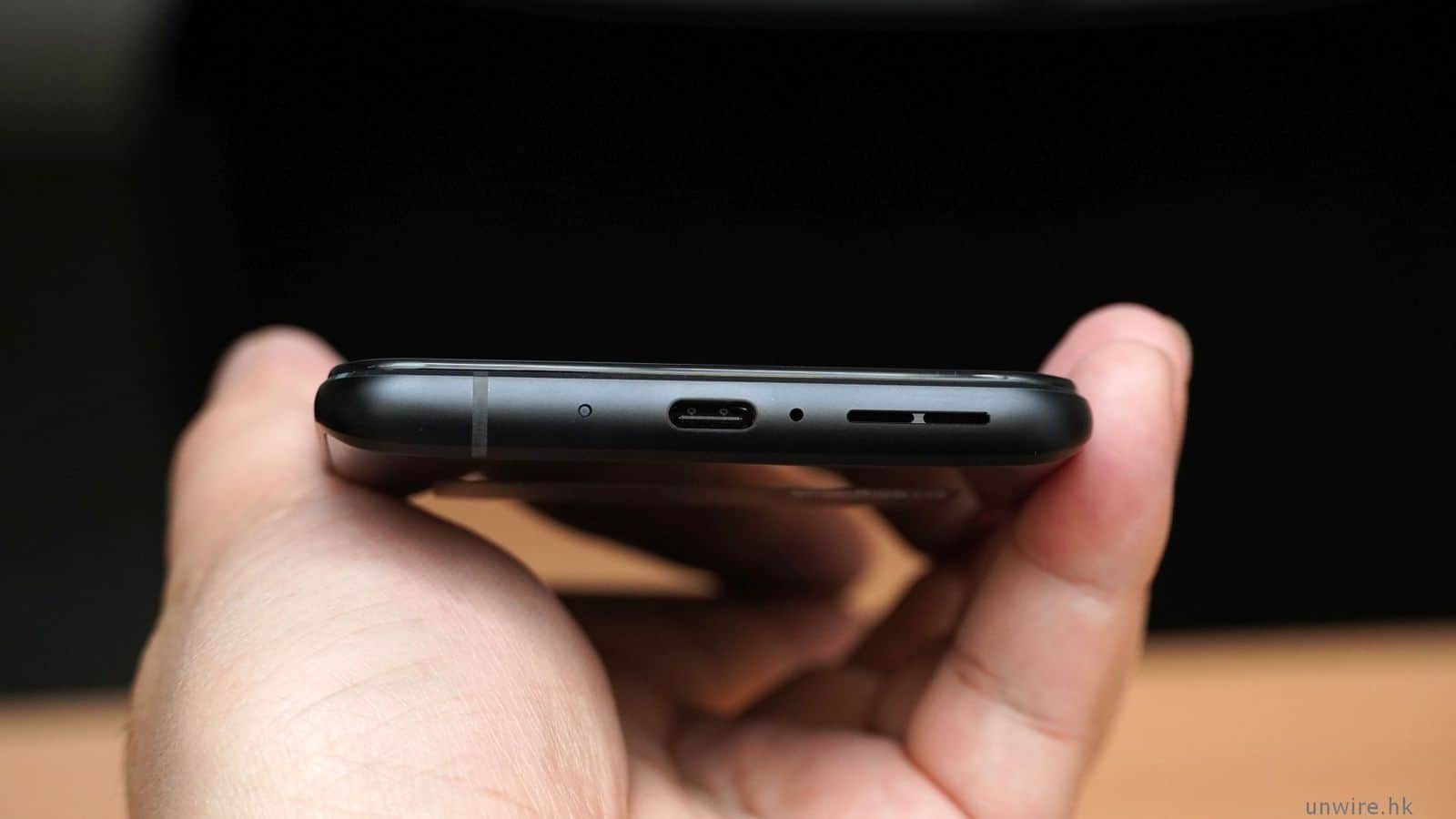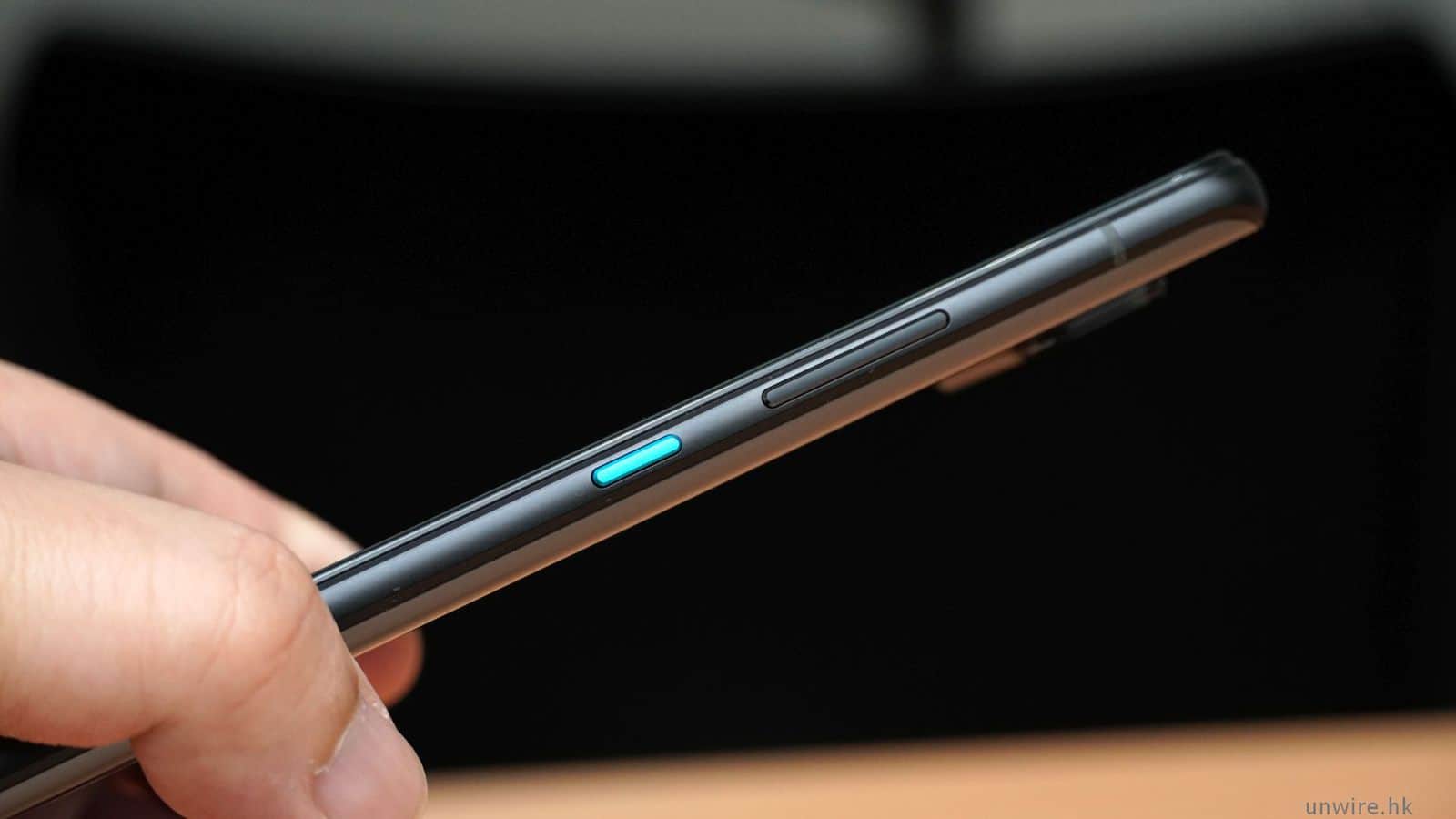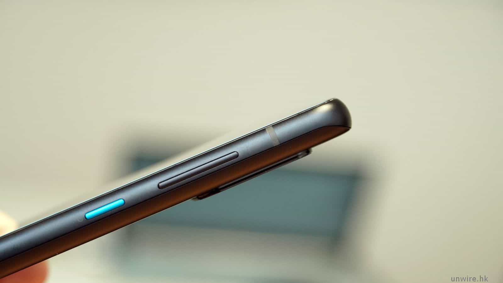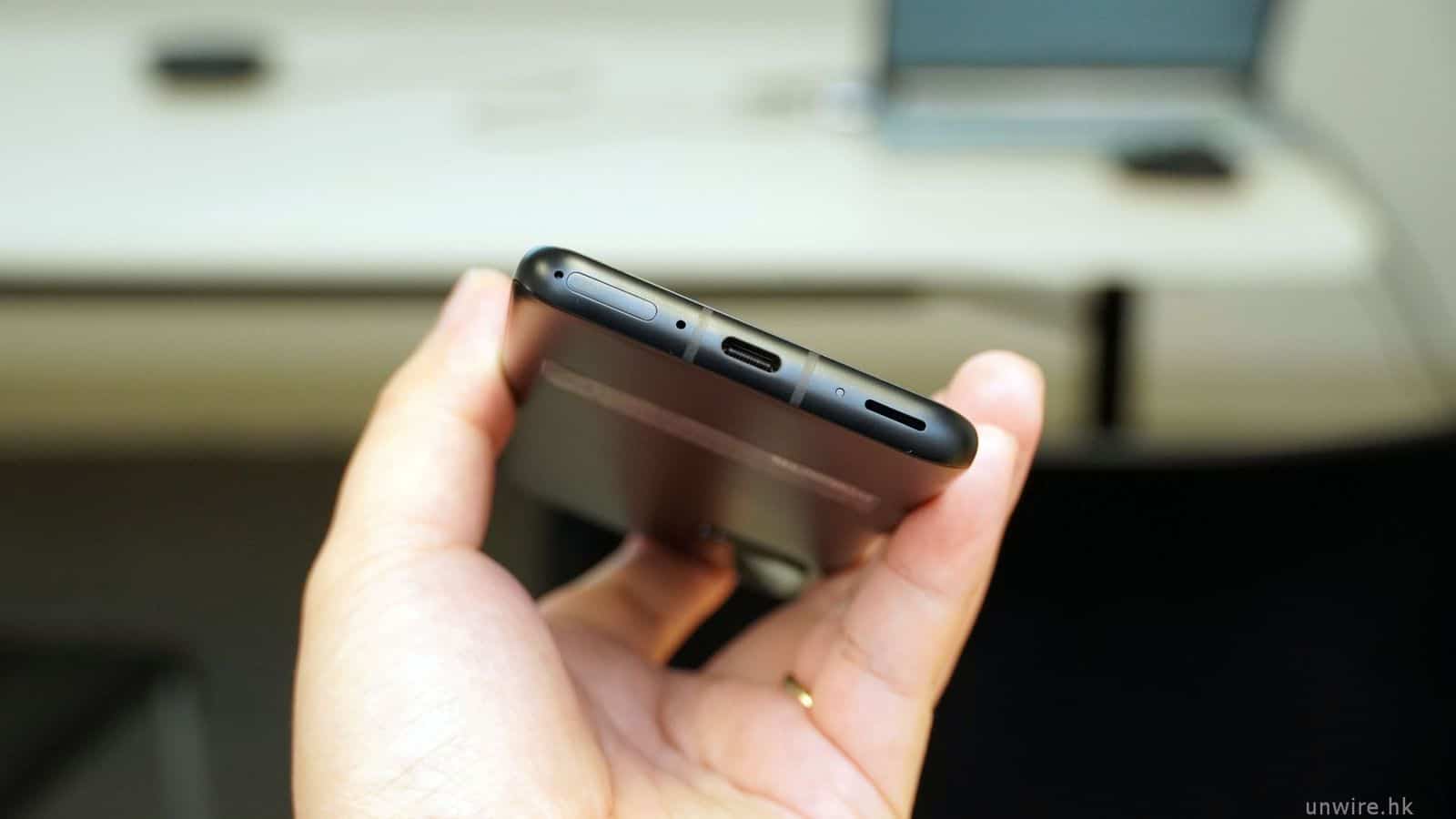 ▲機身右側設有開關鍵及音量鍵,而開關鍵採用藍色設計,配合黑色機身,十分有型。至於機頂就設有 3.5mm 耳機插孔,機底就設有內置喇叭、USB-C 插槽及 SIM 卡槽。