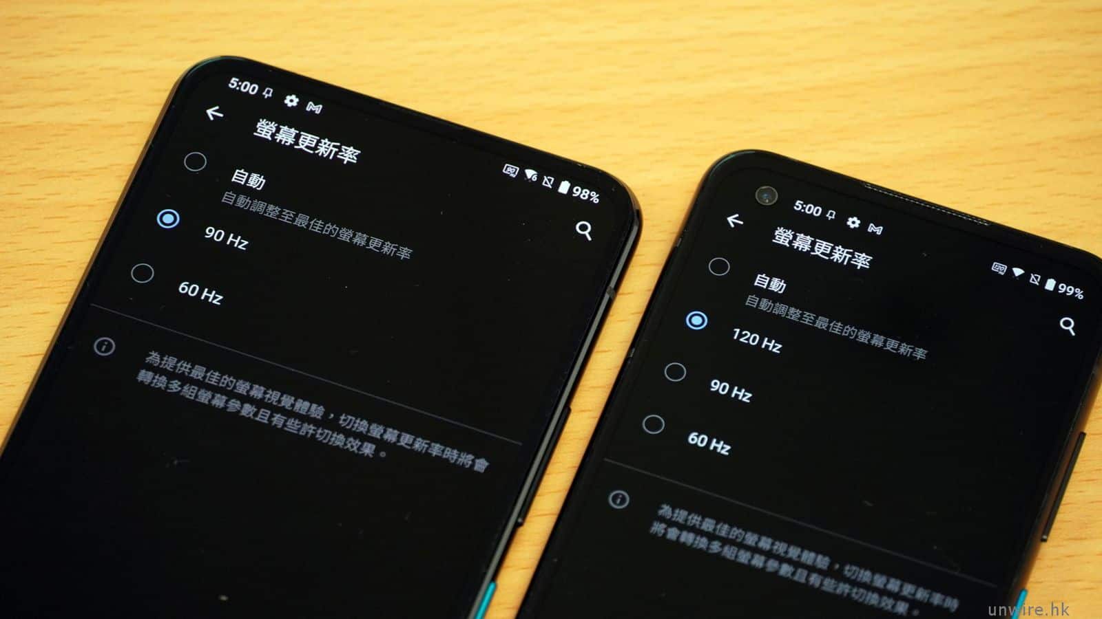 ▲不過要留意的是,兩部機的熒幕更新率是不同的,大機 ZenFone 8 Flip(左)只有 90Hz,而細機 ZenFone 8(右)就高達 120Hz。