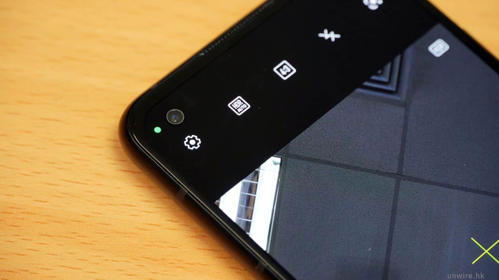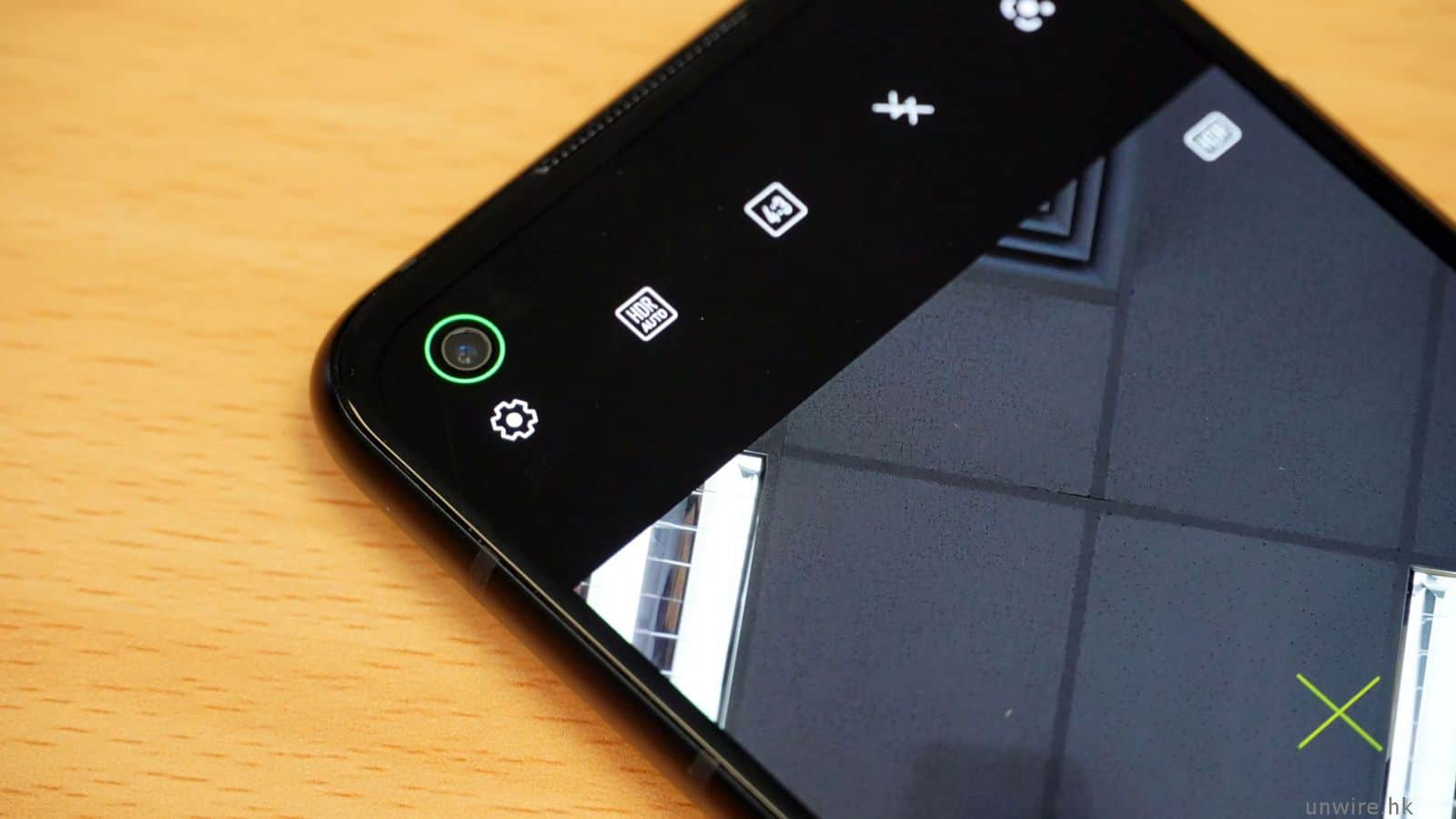 ▲與其他手機前鏡不同的是,當用家打開前鏡時,鏡頭邊位會出現綠色光效,而使用時鏡頭左方會有一盞綠色指示燈顯示。