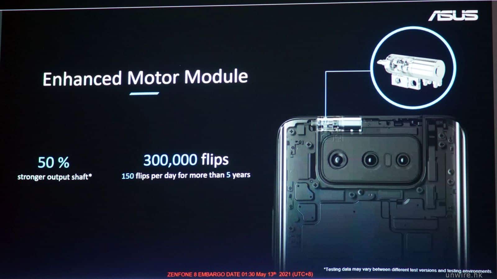 ▲ZenFone 8 Flip 的翻轉鏡頭,官方仍然表示十分耐用,可作 30 萬次轉動,即使每日翻轉 150 次都可以使用超過 5 年。